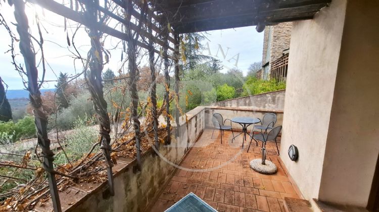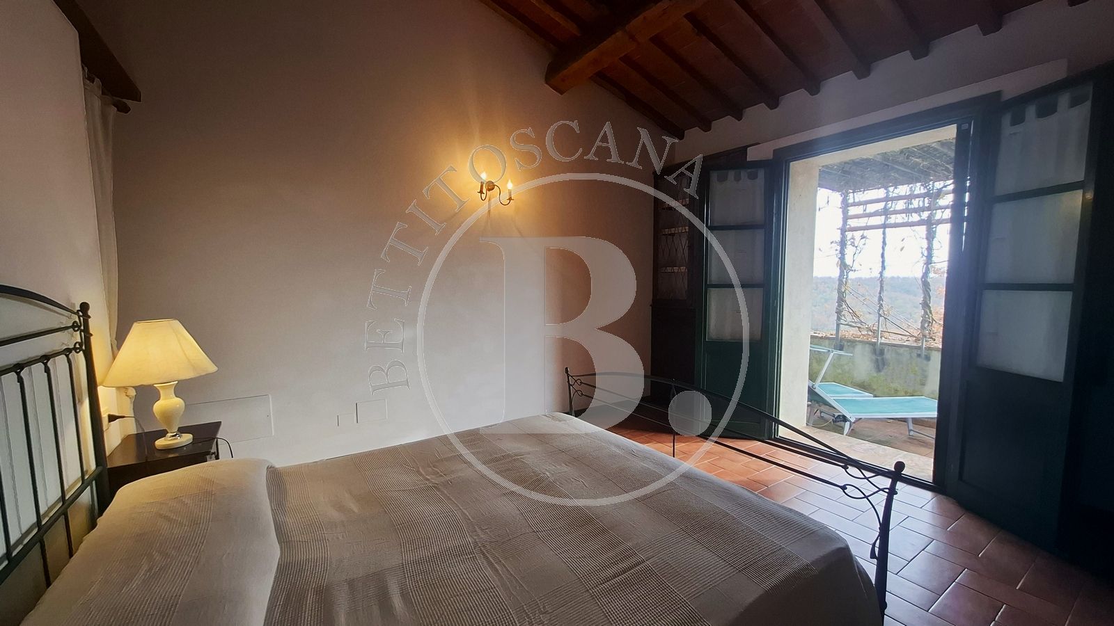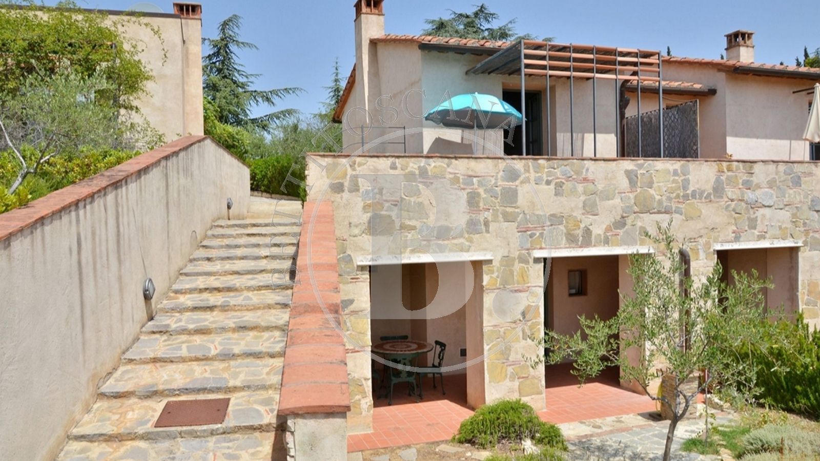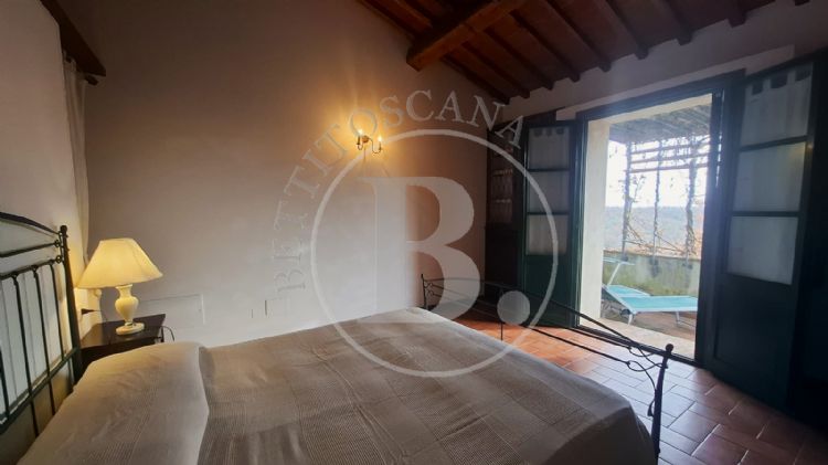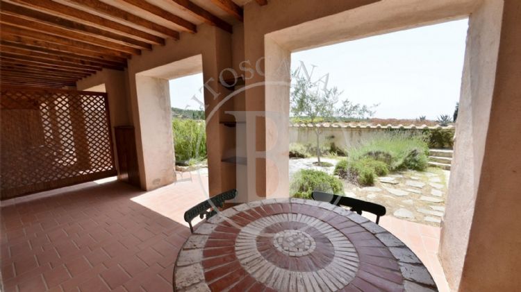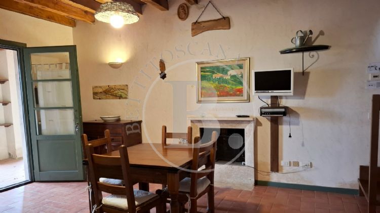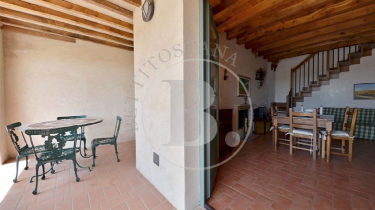 Inside, you'll find a bright living room with a kitchenette and a bathroom. A comfortable staircase leads to the upper floor, where a spacious double bedroom opens onto a splendid panoramic terrace offering unobstructed views of the Chianti hills, vineyards, and cypress trees. This bedroom also provides access to a second, quiet garden at the back of the house.