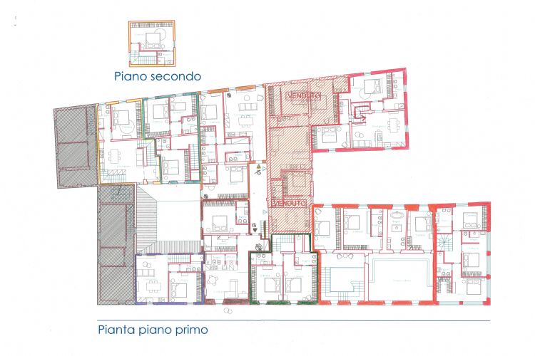 No. 17 – (yellow floor plan / first and second floors) - 108 sq m, 2 bedrooms, 2 bathrooms. Asking price: 290,00