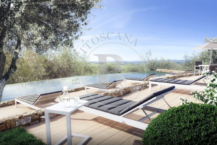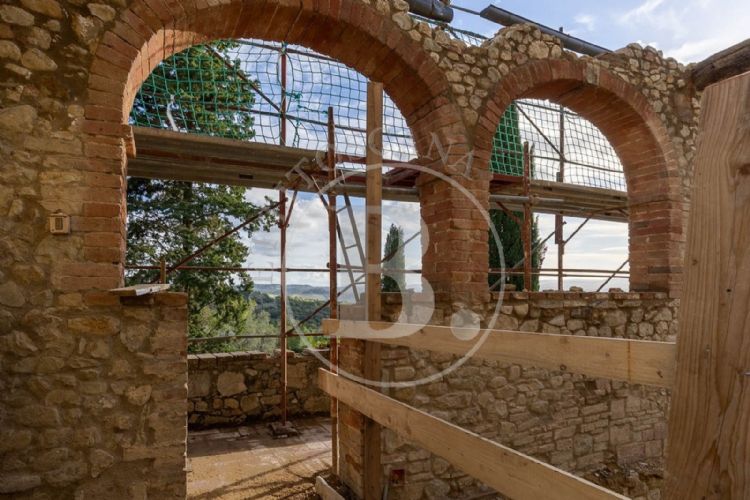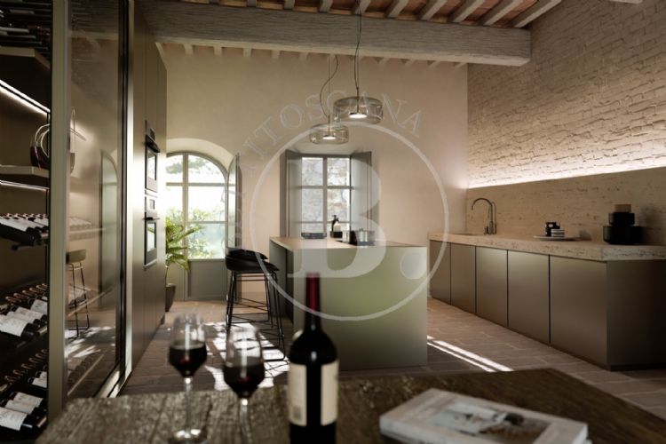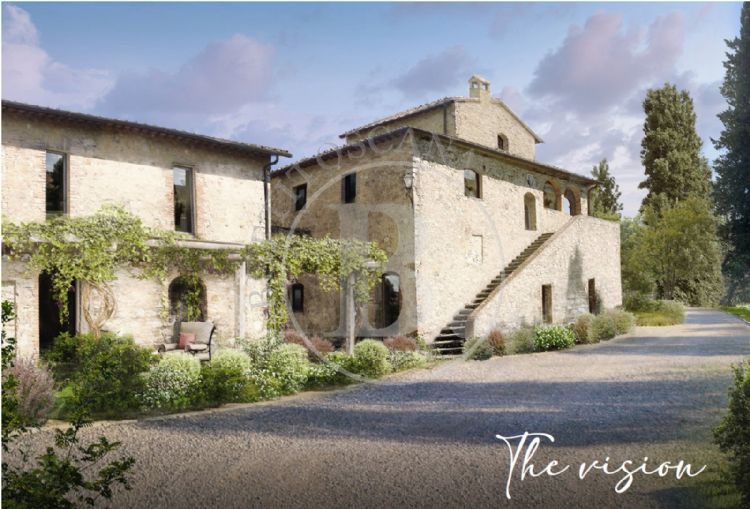 In the beautiful Chianti Classico countryside, just 5 km from Siena and about an hour from Florence, lovely renovation of a small village.