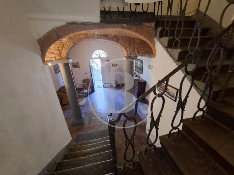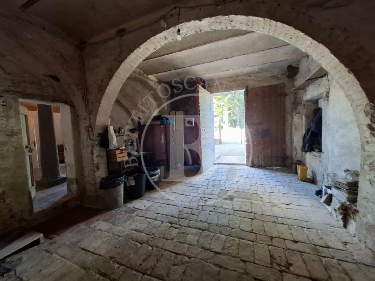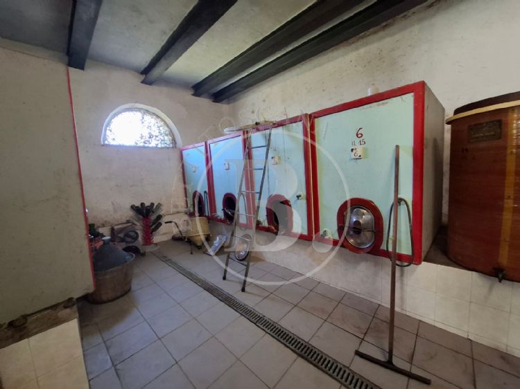 On the ground floor, there is a large and impressive entrance featuring columns and arched vaults. This area provides access to the entire ground floor, which includes a spacious warehouse, cellars, a rustic room, and several additional accessory rooms.