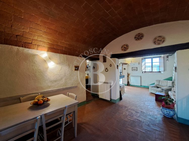 The renovation carried out in 2003 is in typical Tuscan stlye with terracotta floors, a ceiling with beams and bricks and and in the livingroom a particular vault with the original bricks.