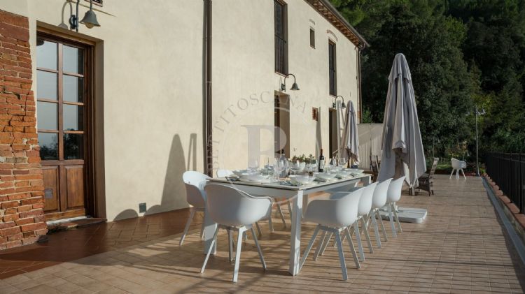 Among the green and evocative Tuscan hills, halfway between the Etruscan village of Palaia and the medieval town of San Gimignano, we offer the sale of this elegant country villa, renovated in 2013 with the use of materials and finishes of absolute quality.