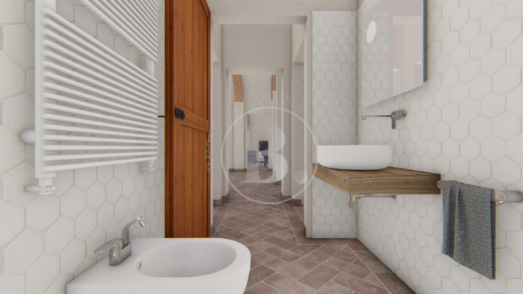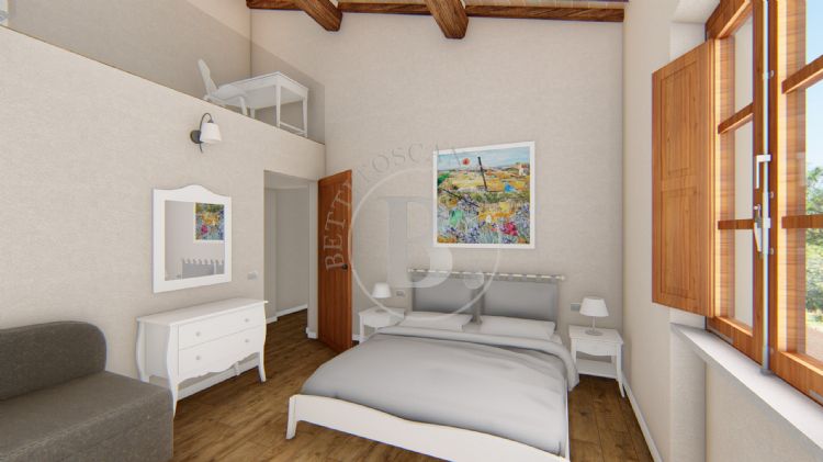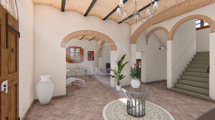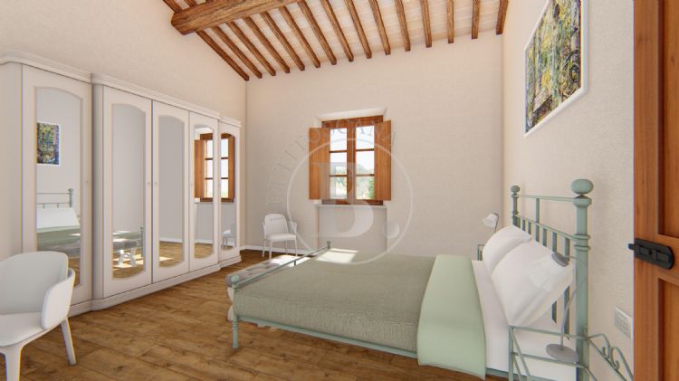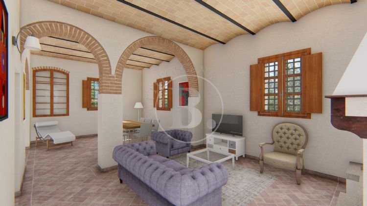 The ground floor is finished with terracotta floors and vaulted ceilings; the first floor needs to be completed, it has beamed ceilings and bricks, the ground needs to be paved.