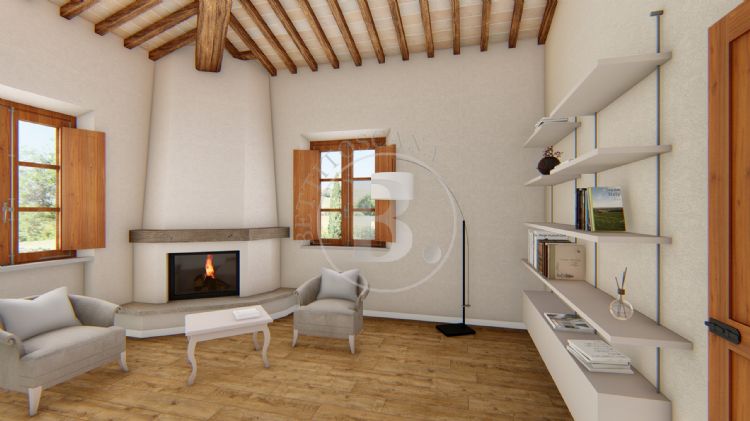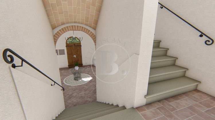On the ground floor, we find a large entrance characterized by a beautiful stone staircase that allows access to the first floor with the ancient and original oven next to it; on the ground floor, there is a large living room with a fireplace, a study, kitchen with fireplace, bathroom as well as a beautiful 30 m2 loggia overlooking the garden.