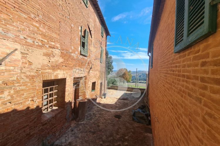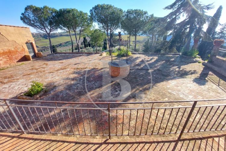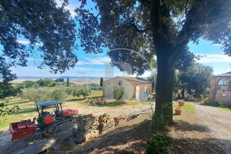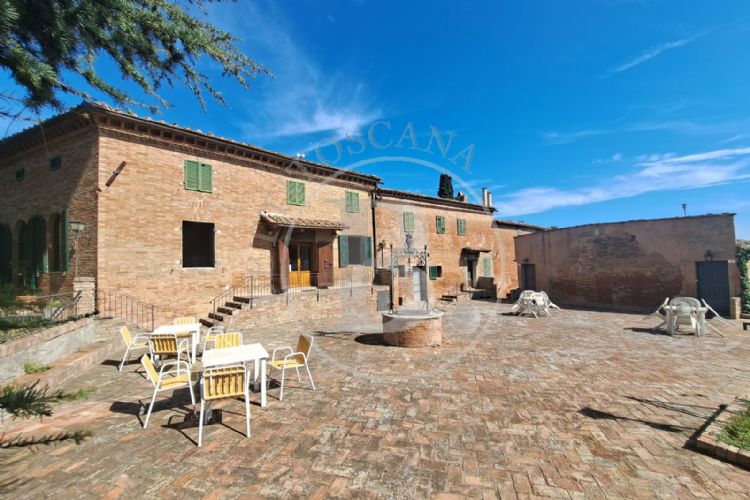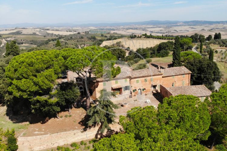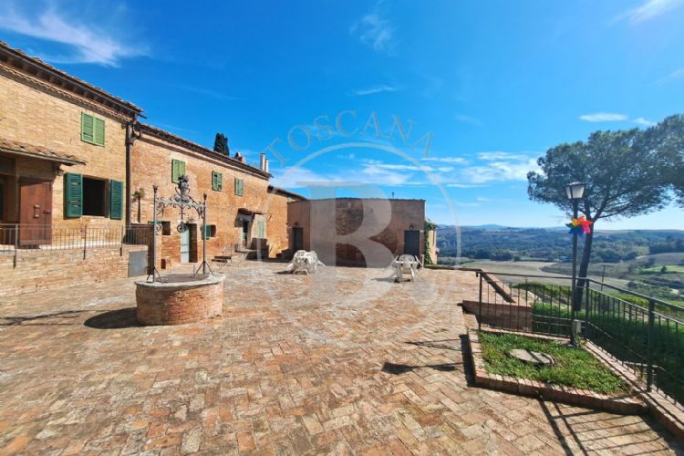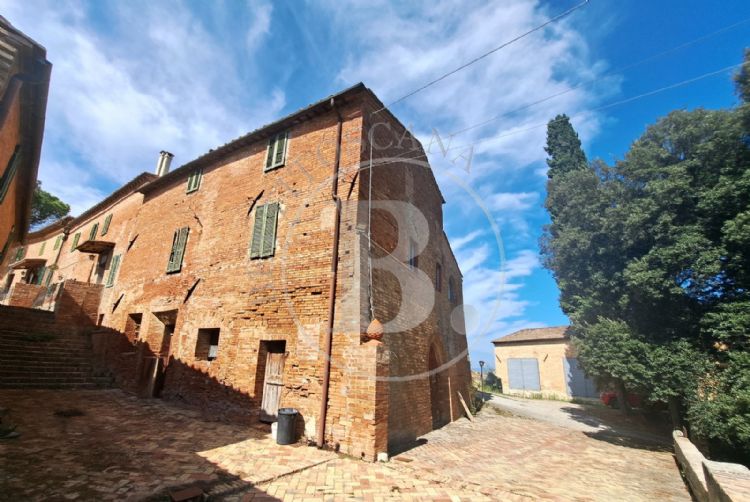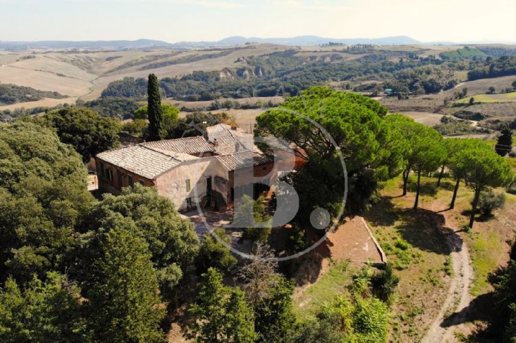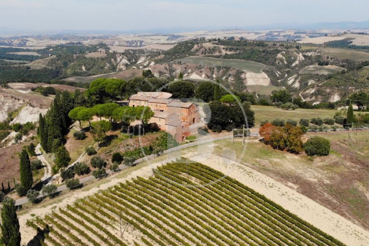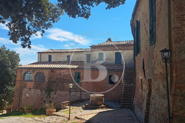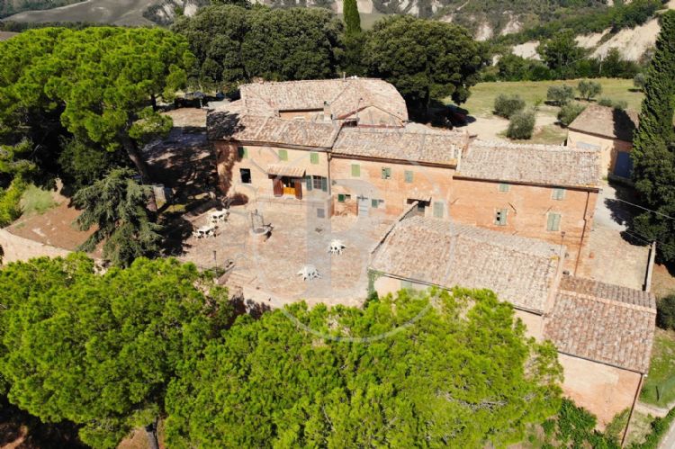On the hills of the Sienese countryside, 12 minutes from Montalcino and a short distance from the Abbey of Monte oliveto maggiore (1,6 km) surrounded by the iconic Crete Senesi lanndscape, we propose the sale of this imposing estate dated 1200 witch covers almost 78 hectares of land and accommodated many buildings for a total of 2410 sqm.