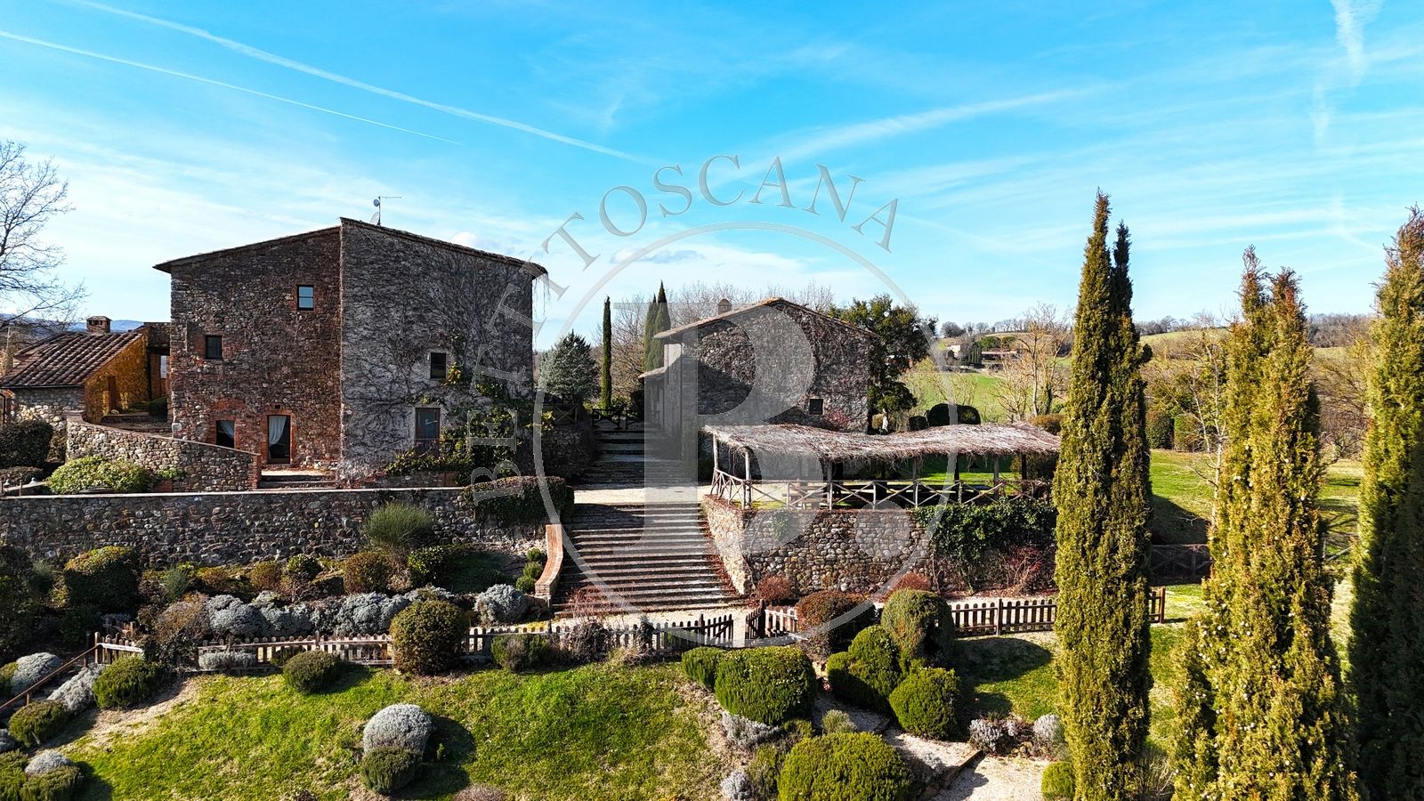 The property we offer for sale is a charming stone farm immersed in the picturesque Tuscan countryside, representing a perfect combination of authenticity, comfort, and timeless beauty; ideal both as a prestigious villa for a large family or as an investment opportunity for the development of an attractive tourist complex.