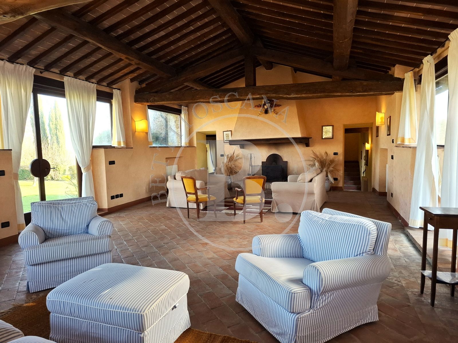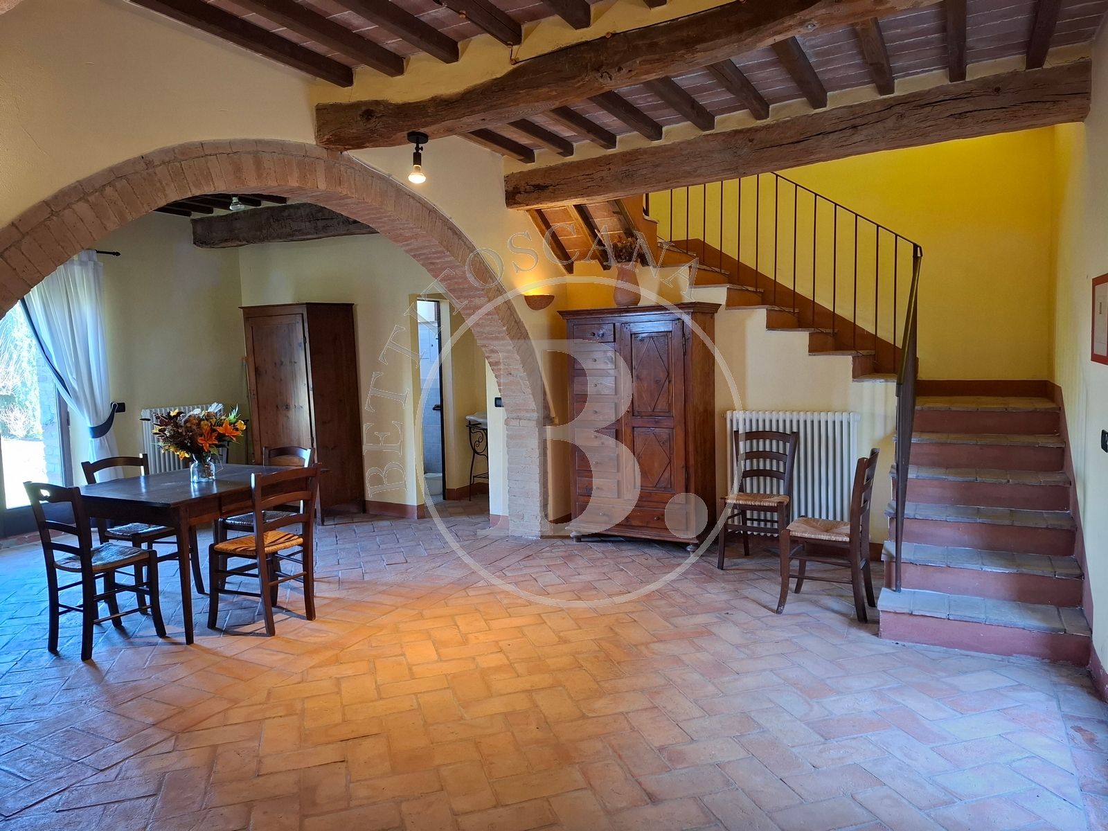 • Completely renovated in 2001, enhancing materials such as exposed wooden beams, terracotta floors, and natural stone, it is rich in carefully preserved architectural details and enhanced by refined furnishings that lend the rooms a warm and elegant feel.