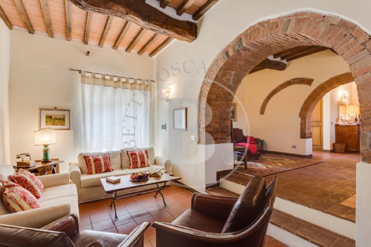 Among the rolling Chianti hills of Siena we offer the sale of a perfectly renovated FARM surrounded by 26 hectares of land which includes an olive grove with 150 plants in production, 5 hectare IGT vineyard (Cabernet Franc 30%, Merlot 30%, Sangiovese 18% and Alicante), arable land and wood land.