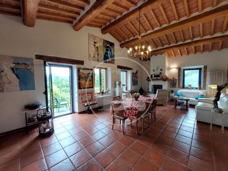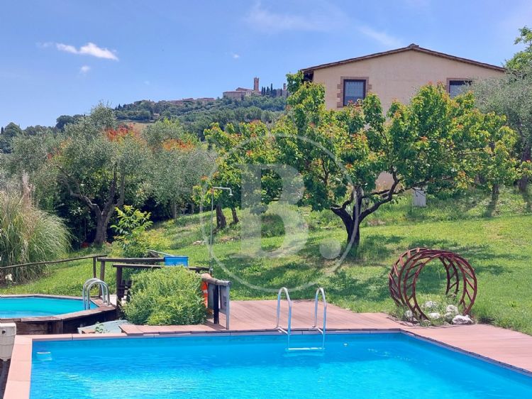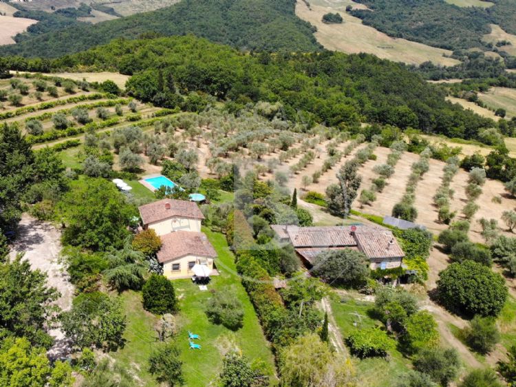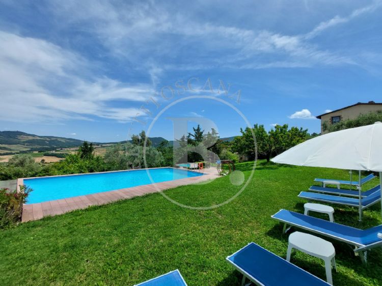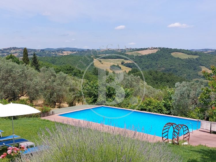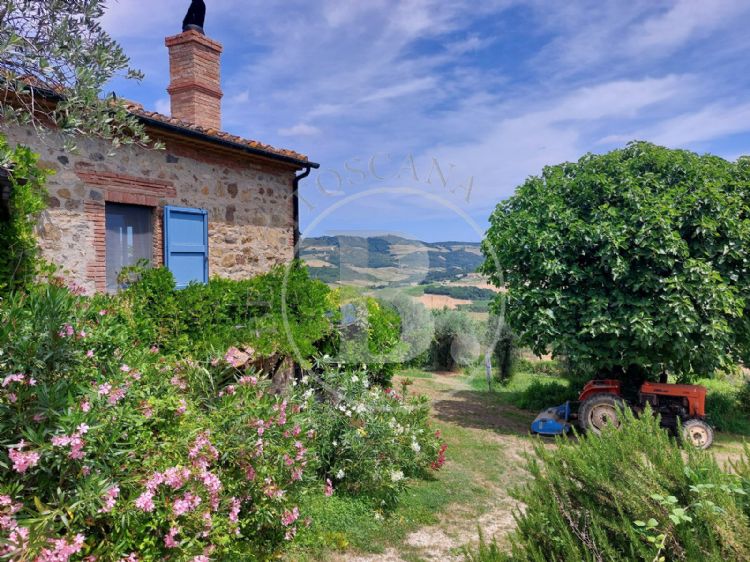 Nestled the fascinating Sienese countryside a few km from the characteristic medieval village of Radicondoli, among woods, vineyards and rolling hills, for sale farm located in a splendid panoramic position surrounded by 7 hectares of land.