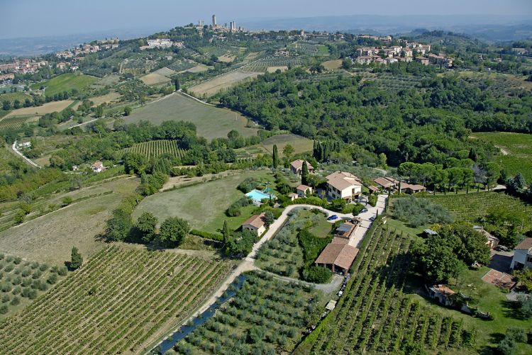 For sale exclusive property located in the countryside of San Gimignano with a beautiful view of the towers, characterized by an agritourism complex divided into 7 apartments as well as a cellar, annexes, and storages for a total surface of approx. 900, surrounded by 3 hectares of land with a park and swimming pool.