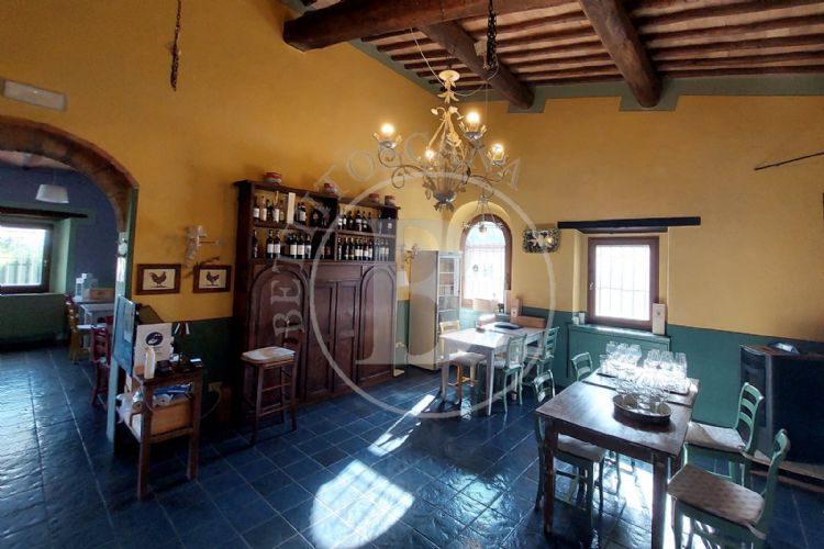 The construction of the building, which currently runs as a restaurant, is a typical country farmhouse with stone and brick exteriors and typical interiors in terracotta beams and bricks which give a welcoming and pleasant country house atmosphere.