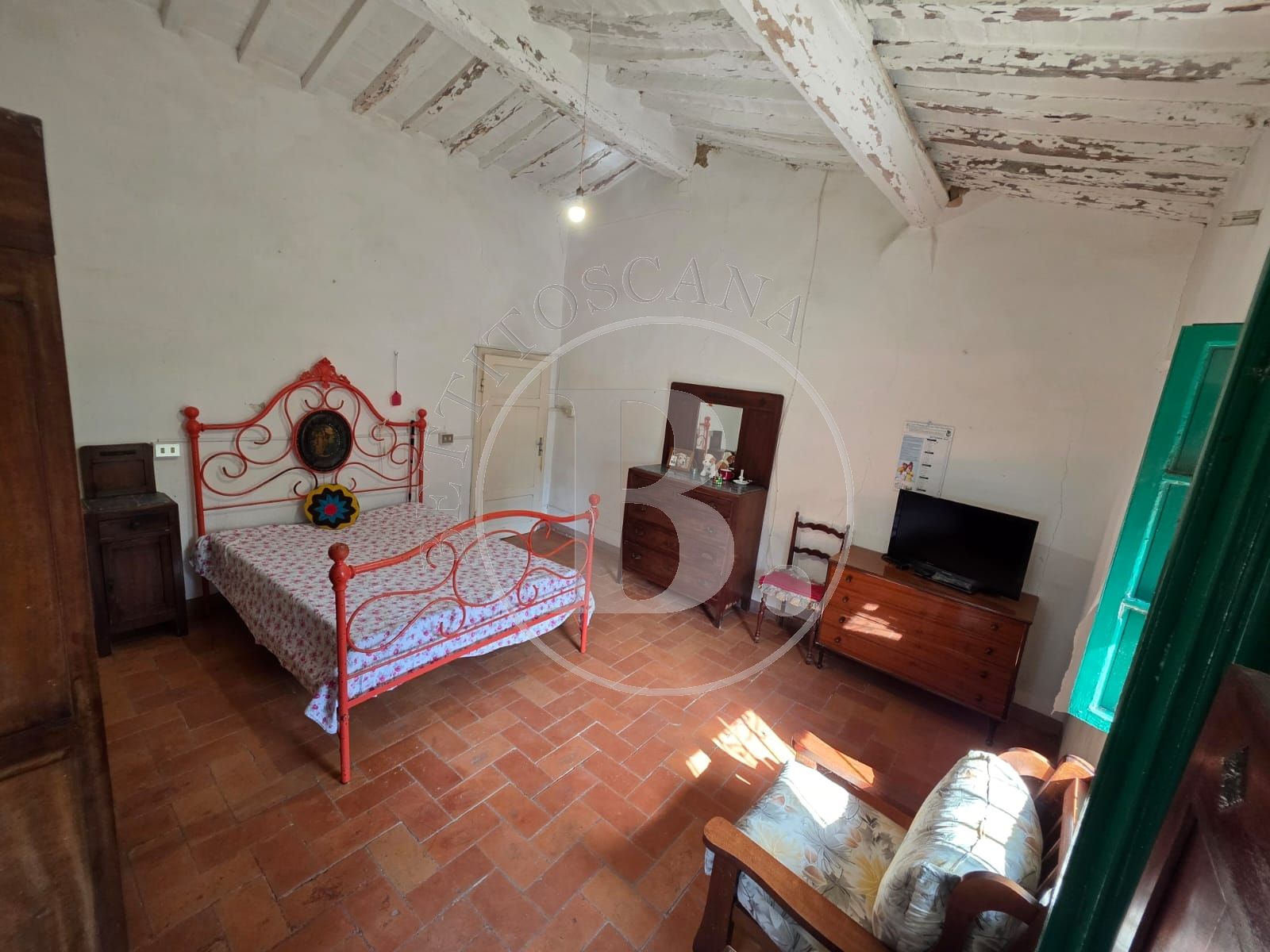 The main farmhouse retains the charm of traditional Tuscan architecture and features a first-floor apartment of about 180 square meters, which is already habitable and accessible through an external staircase. It includes a living room, kitchen, four bedrooms, and a bathroom.