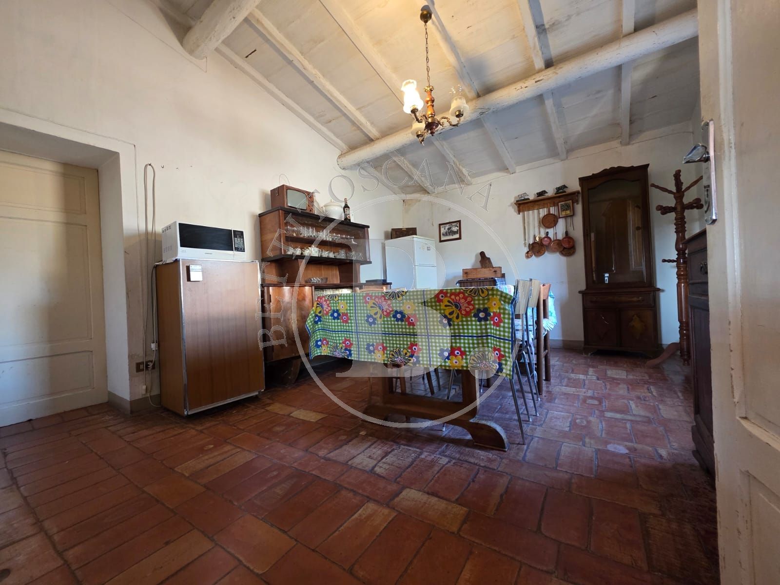 The property consists of several buildings with great potential, including a main farmhouse, an agricultural shed, warehouses, cellars, and stables, totaling approximately 963 square meters. This presents an ideal opportunity for those seeking a charming residence, a working farm, or a high-end hospitality facility.