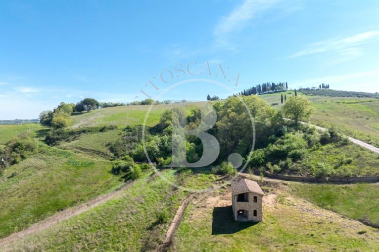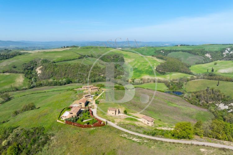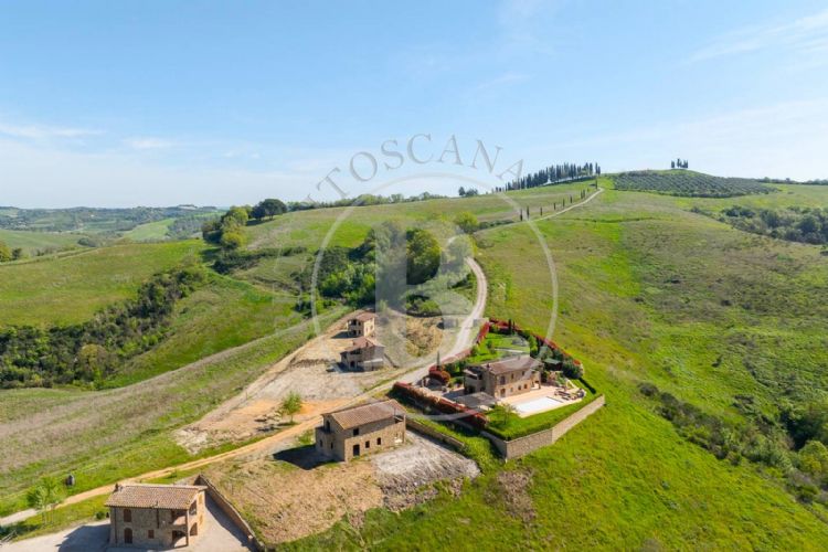 Accessible via a picturesque gravel road lined with majestic cypress trees, this property is inert in a small country hamlet made of 7 independent stone units and is situated on a hilly position, halfway between San Giovanni d'Asso (9 km) and Montalcino (13 km).