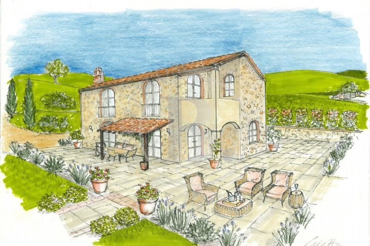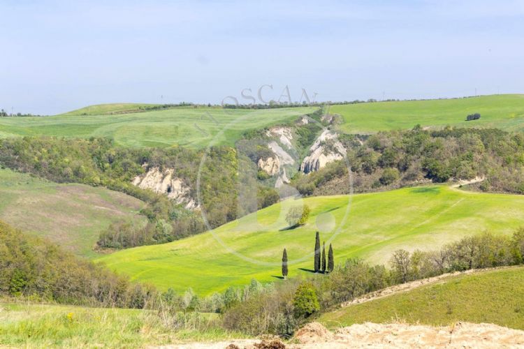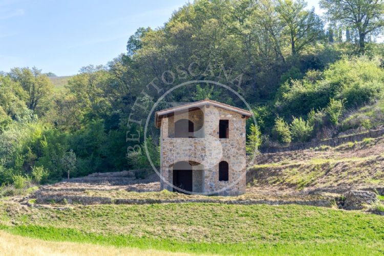 Located in the breathtaking Val d'Orcia and Crete Senesi region, for sale STONE FARMHOUSE features a spacious exclusive garden of approximately 1300 square meters with scenic panoramic views.