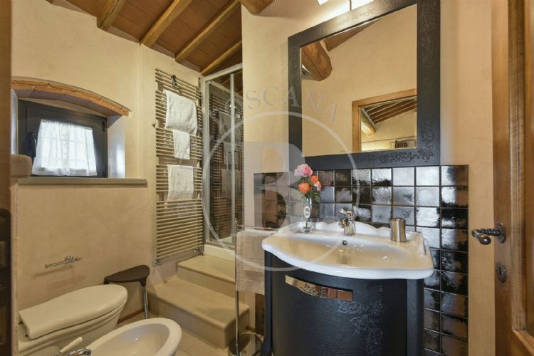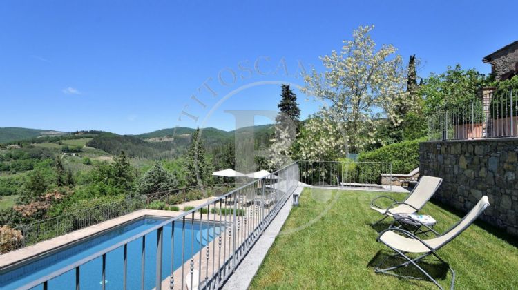 The terraced garden is also very unique, consisting of three different levels. Each level is designed for a specific purpose: the convivial area is intended for enjoying open-air meals with a stunning panoramic view, the lawn has the pool house, gym, bathroom, and changing rooms, and lastly the swimming pool and the splendid panoramic solarium permits to relax and enjoy the typical Chianti landscape among olive trees, cypresses, vineyards and medieval villages.