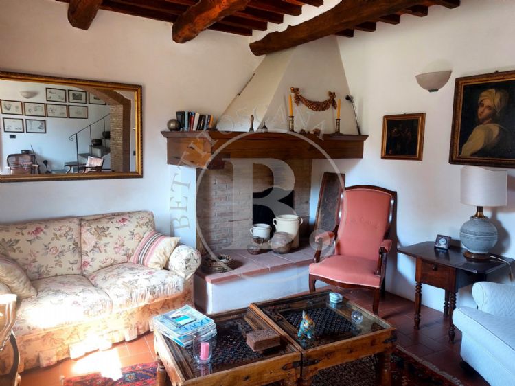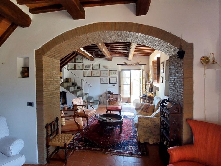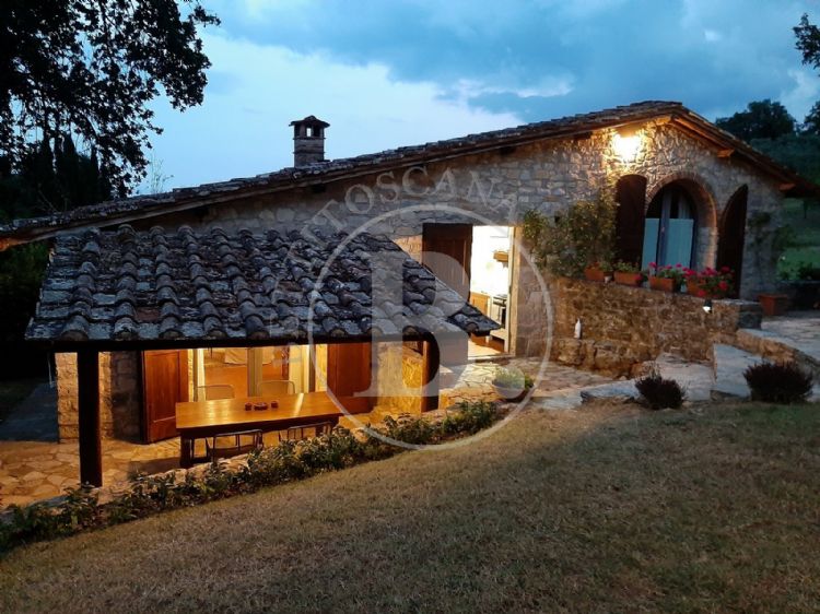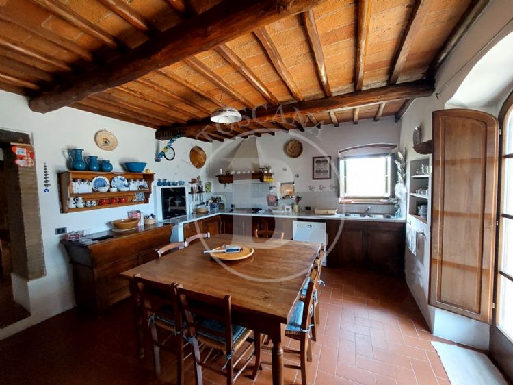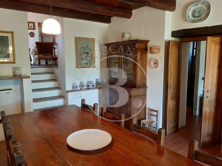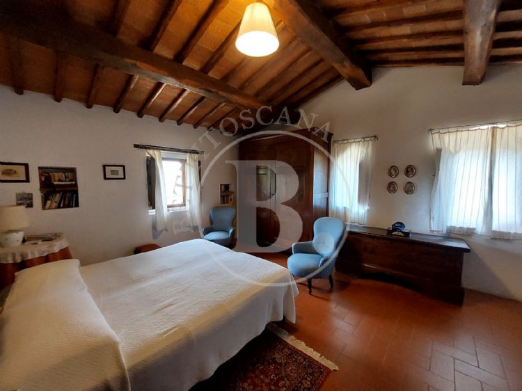 The 16th century Tuscan MAIN FARMHOUSE – made of natural stone – has a gross surface of approx. 270 sq.mtr. and consists of a living room with an open fireplace, a dining room, a fully equipped kitchen, three bedrooms and three bathrooms, a study, two storage rooms, a laundry.