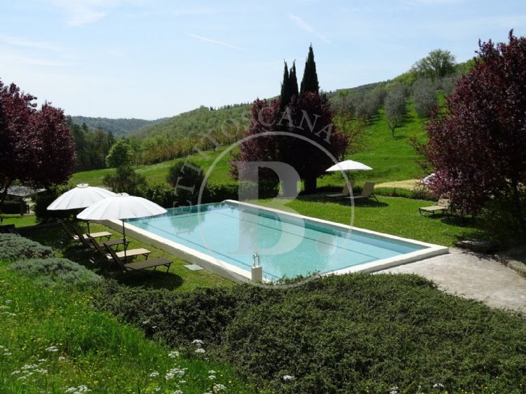 This charming Tuscan estate farmhouse is located in a very quiet position between the well-known villages of Radda in Chianti, Castellina in Chianti and Gaiole.
