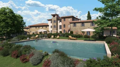 Tra le dolci colline senesi, nuovo progetto di ristrutturazione di un complesso immobiliare caratterizzato da una nobile villa con cappella rinascimentale e vari annessi circondati da un parco storico a soli 5 km dalla città.