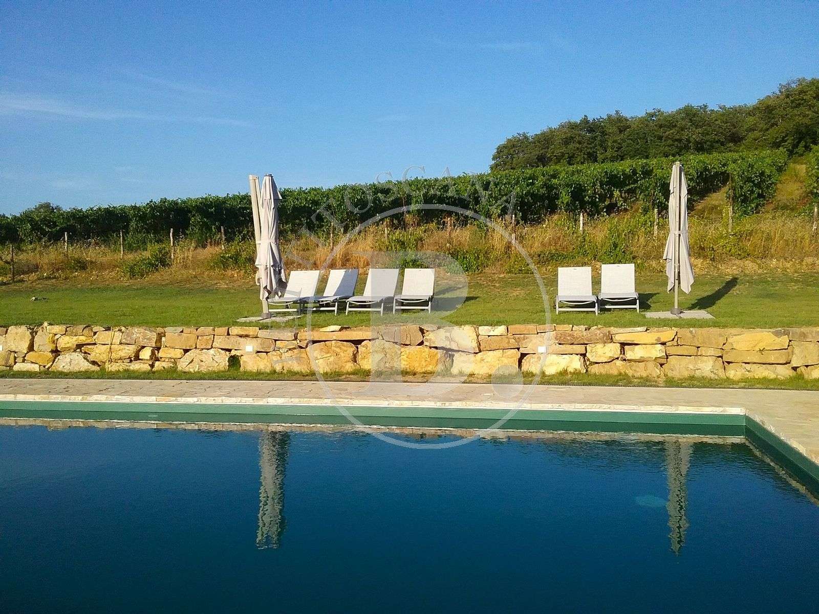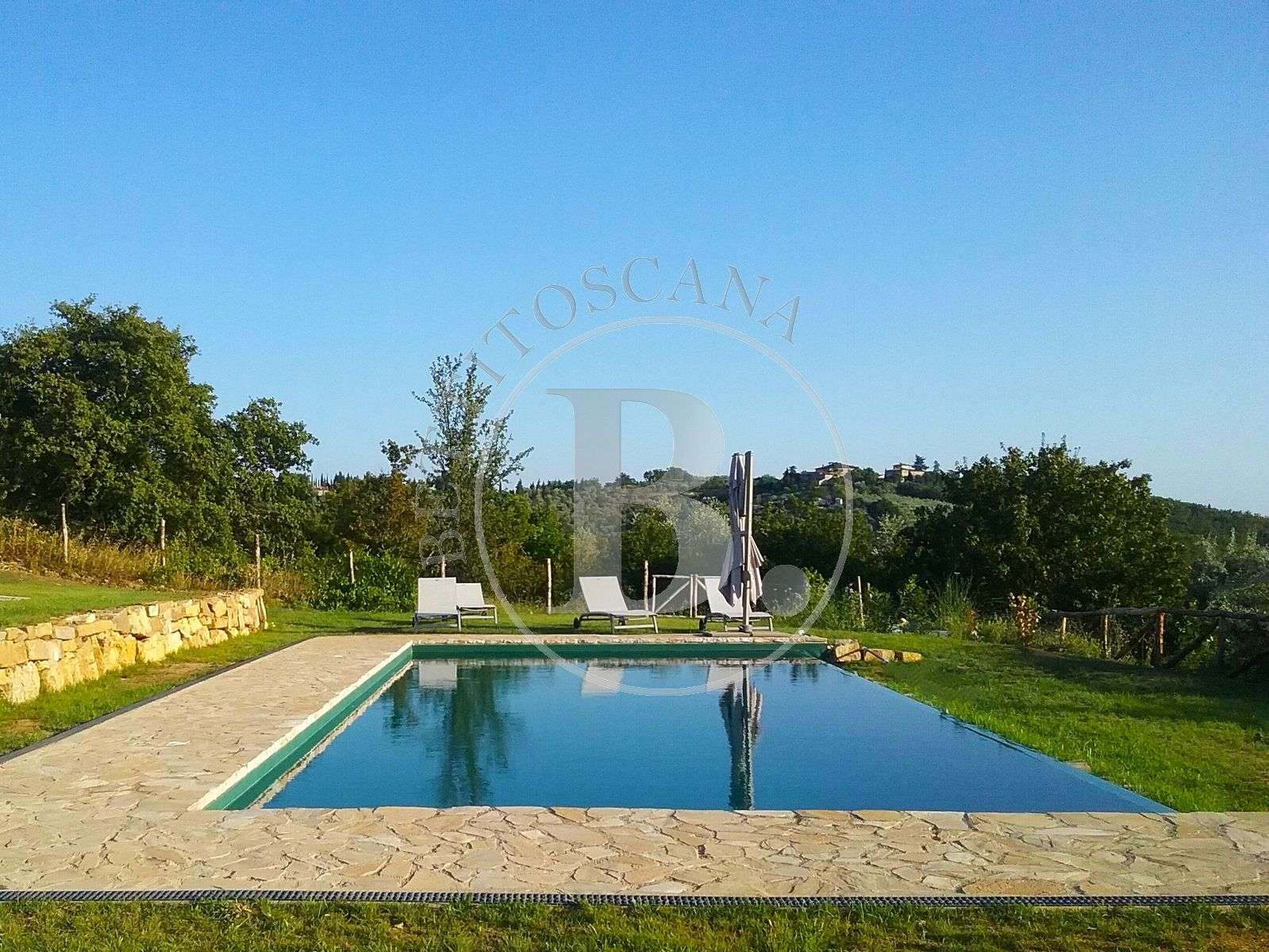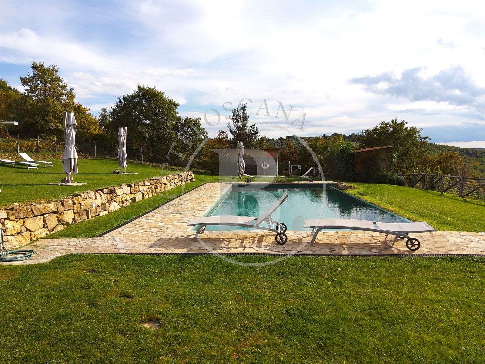 A pochi passi dall’abitazione si raggiunge la piscina condominiale, vera perla della proprietà: uno spazio curato, riservato e incorniciato da un paesaggio tipicamente toscano. Qui si trovano anche le aree parcheggio.