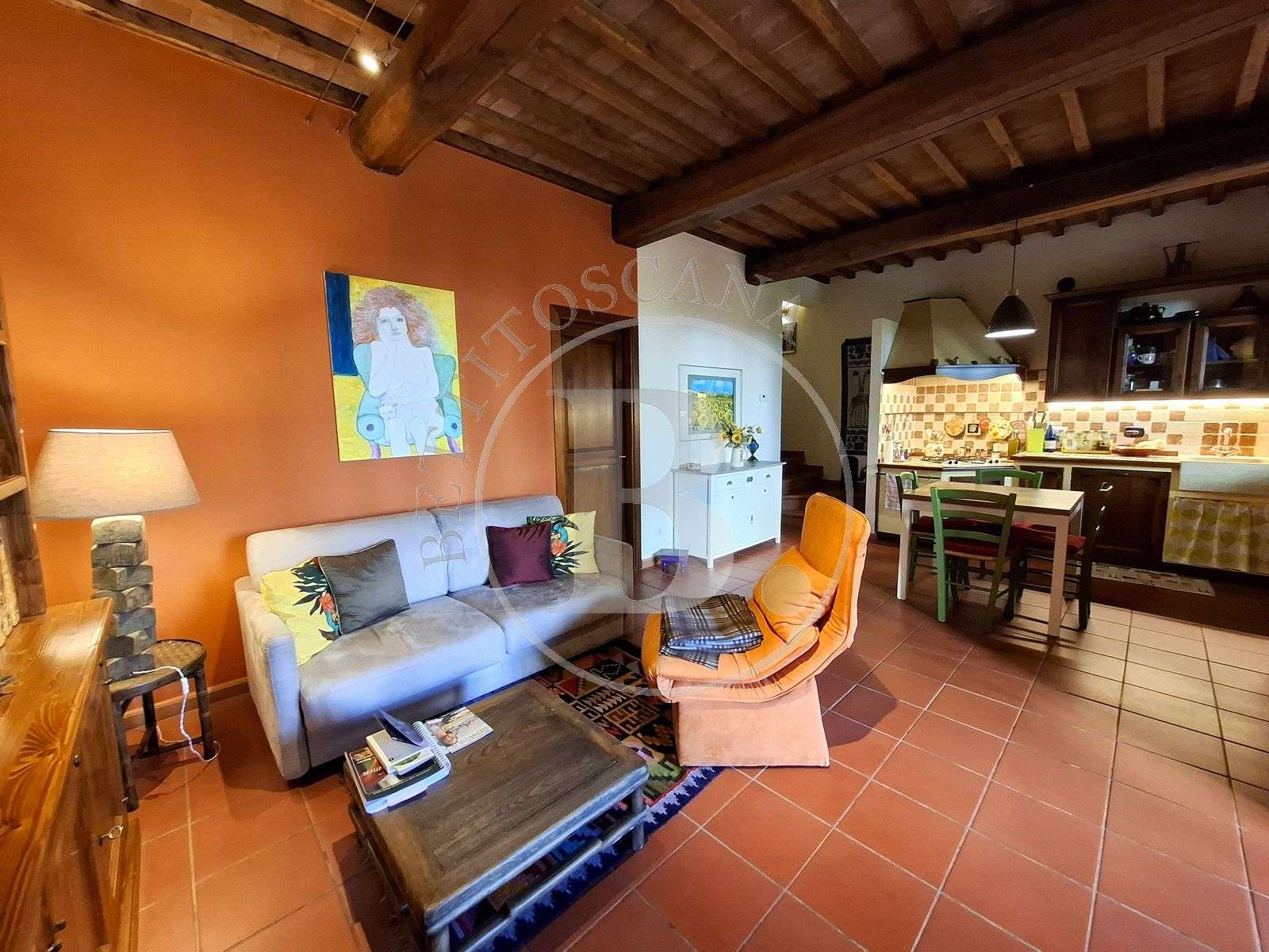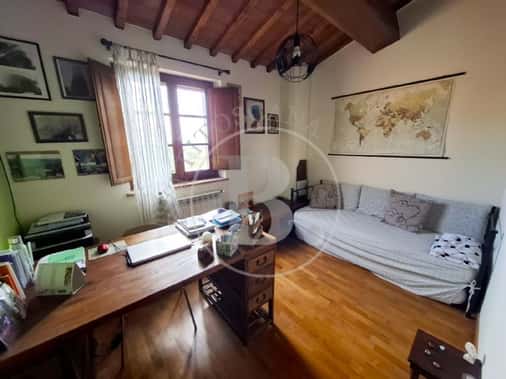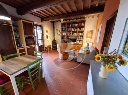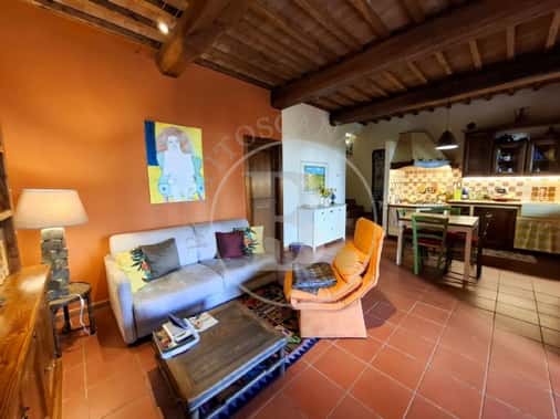 Internamente il pavimento della zona giorno è in cotto toscano, il soffitto con travi di castagno e mezzane; il piano superiore in parquet.