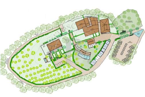 Nel parco è prevista una piscina panoramica bordo sfioro, Spa e zona fitness.
