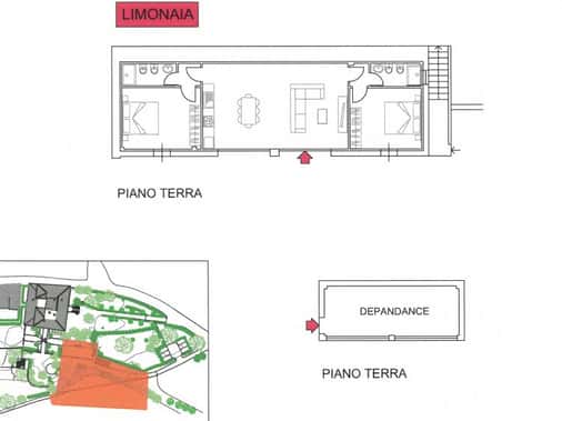 Limonaia: appartamento su un unico livello al piano terra di mq. 96 composto da un'ampia zona giorno, cucina a vista, due camere da letto, un bagno, un ripostiglio.