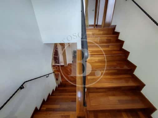Scale interne in legno conducono sia la piano superiore dove su sviluppa la la zona notte che nel seminterrato con il rustico e garage.