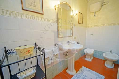 Poco distante il fienile perfettamente ristrutturato, disposto su due livelli, con una superficie di circa 150 mq con 5 camere e quattro bagni oltre a due soggiorni con cucina.