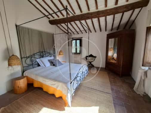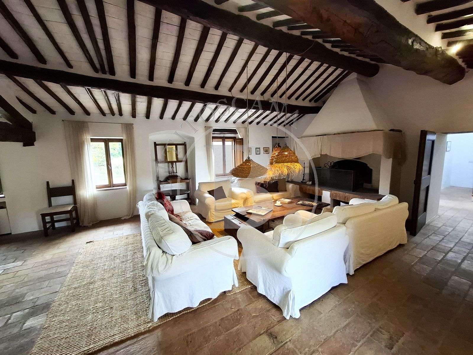 Un ampio soggiorno panoramico di 90 mq, luminosissimo e con vista spettacolare sulla campagna circostante, 6 camere da letto, ciascuna con bagno privato; grande sala da pranzo e cucina professionale attrezzata, ideali per la gestione di eventi o soggiorni esclusivi.
