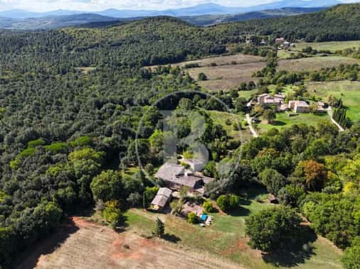La tenuta è immersa in 44 ettari di terreno, suddivisi tra bosco, uliveto e curati giardini.Attualmente è presente una piscina fuori terra, con possibilità di realizzare una piscina interrata secondo le normative vigenti.