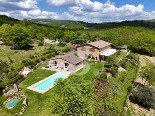 Nella bellissima campagna toscana tra Firenze e Siena e a pochi km dallo storico borgo di Badia Passignano, gioiello medioevale del Chianti Classico, proponiamo la vendita di questo elegante casale con dependance rivolti a sud, piscina e 25 ettari circa di terreno.