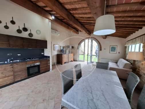 Incantevole la dependence perfettamente ristrutturata, disposta tutta al piano terra con due ingressi uno fronte piscina e l’altro difronte al casale, si compone di un ampio e luminoso soggiorno con angolo cottura, due camere e il bagno.
