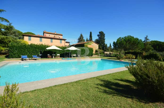 Completa la proprietà un ampio resede esclusivo con giardino, aia mattonata e piscina, oltre che al terreno agricolo che ha una superficie di circa Ha 16 di cui 12 Ha di seminativo con 130 piante di olivo, 13.000 mq. di vigneto e rimanenza bosco.