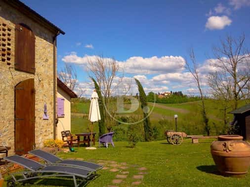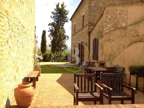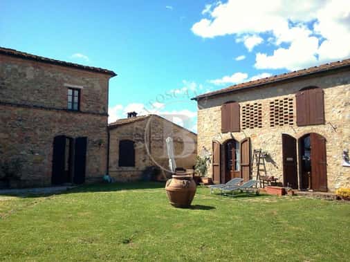 In posizione collinare e panoramica tra Siena e Buonconvento, nelle famose dolci colline delle Crete Senesi, antico casale tipico toscano con adiacente capanna in pietra e circa 1 Ha di terreno.