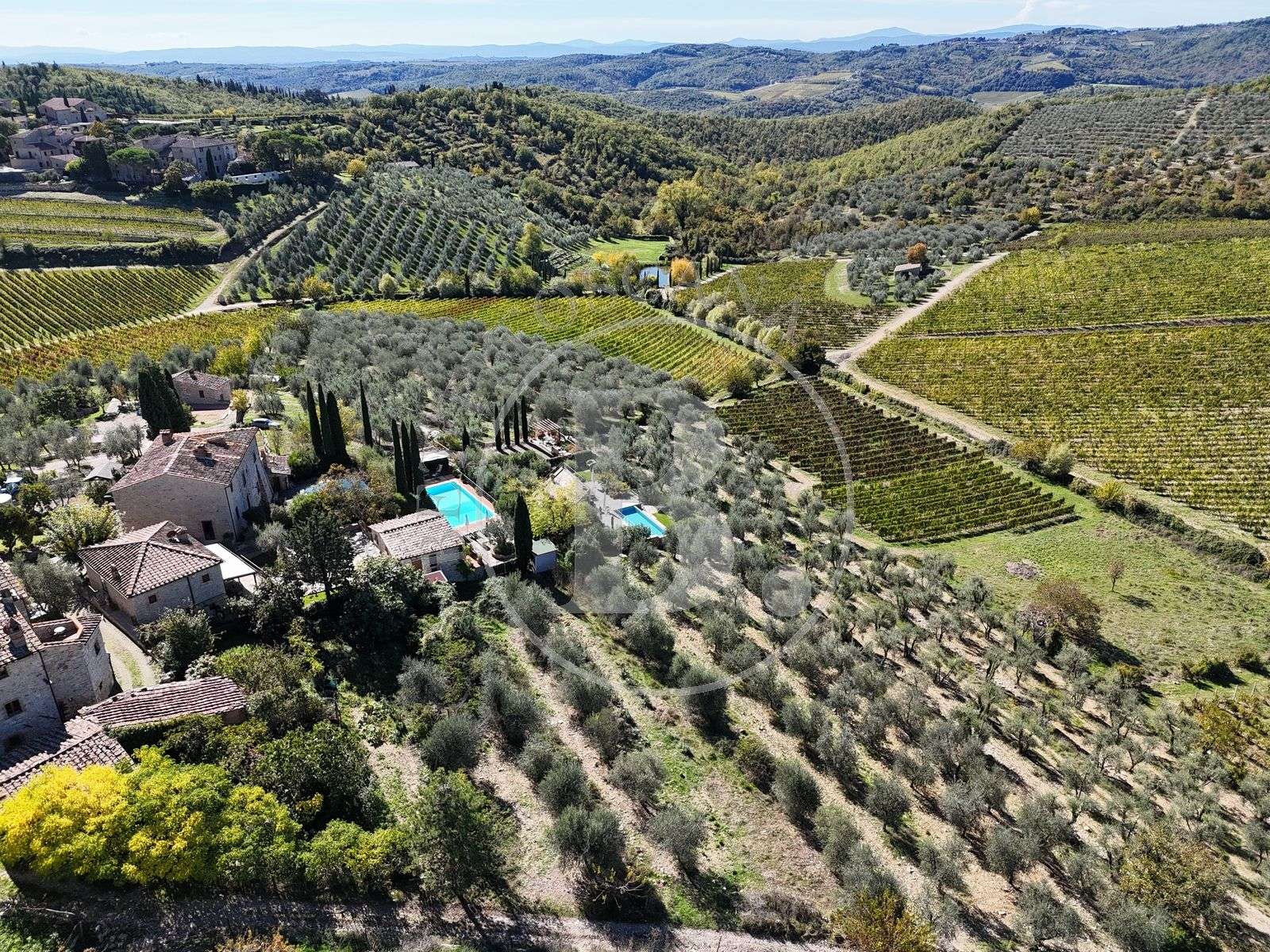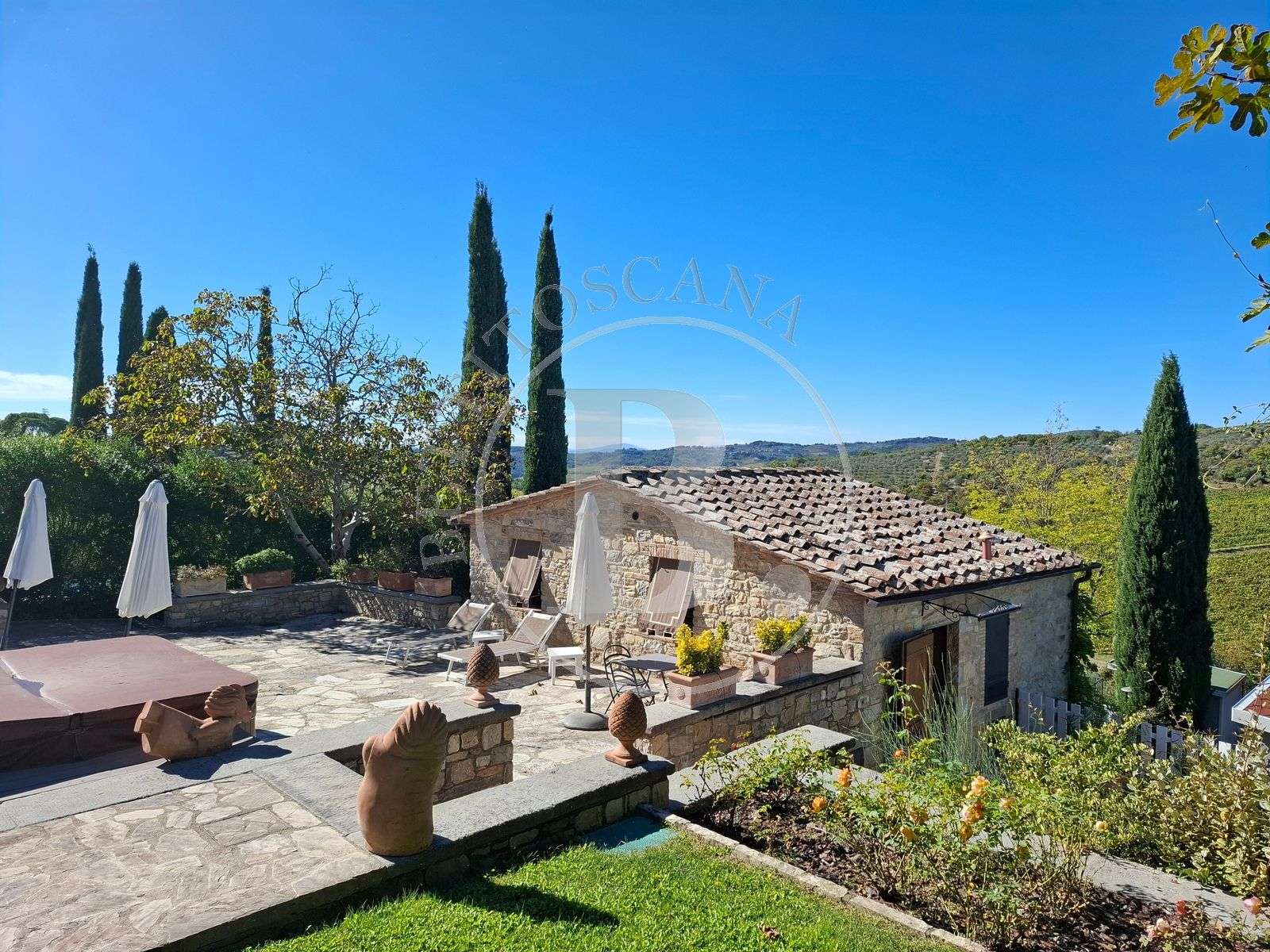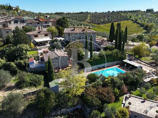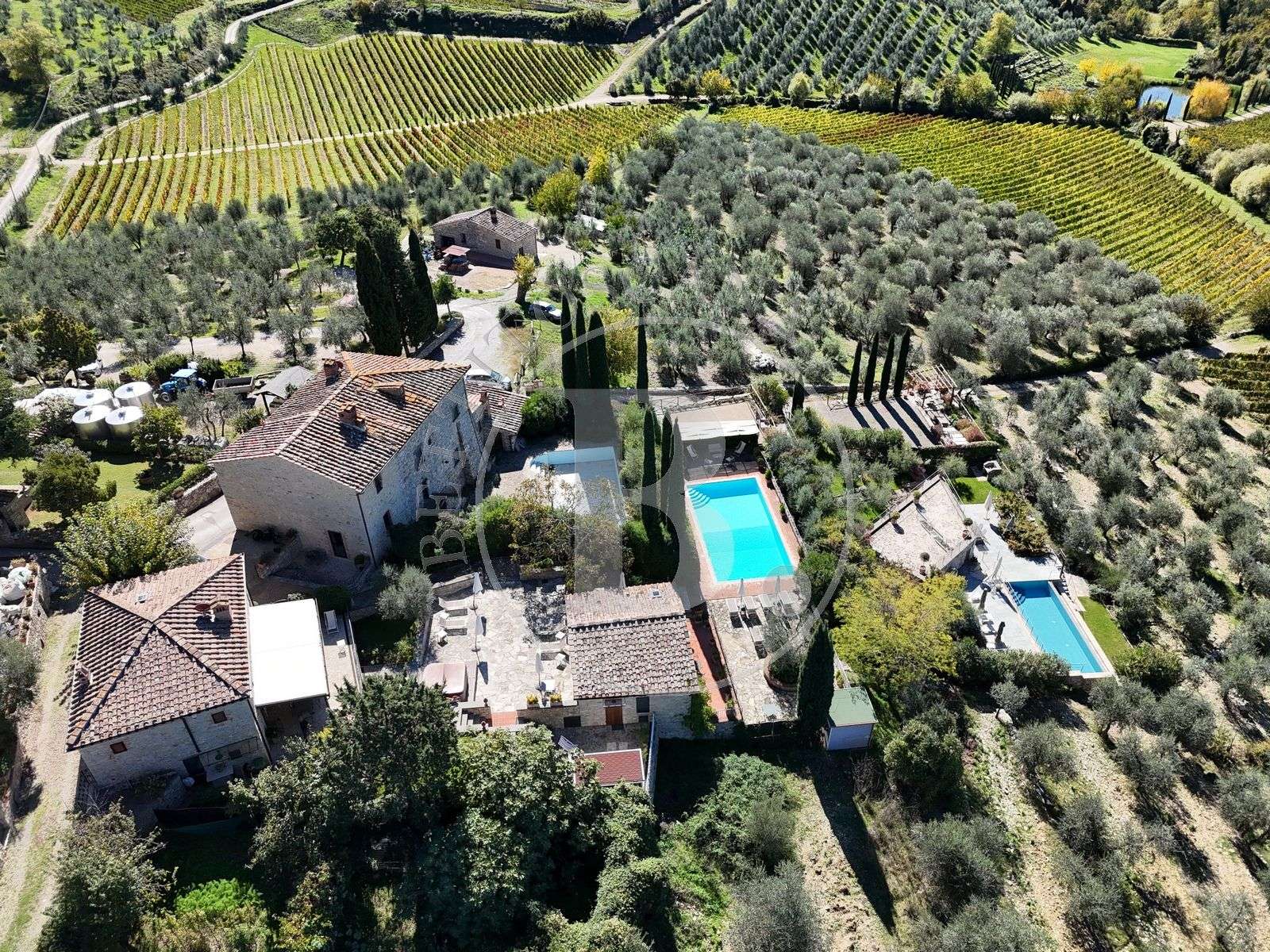 Situata in una tranquilla zona rurale nel cuore del Chianti classico, all’interno di un suggestivo borgo dal sapore autentico e dall’atmosfera rigenerante, vendesi un elegante casale in pietra con delizioso cottage indipendente, circondati da un ampio giardino terrazzato, ricco di angoli riservati e zone relax; una grande piscina panoramica (15x7 m), perfettamente integrata nel paesaggio, completa questo quadro idilliaco.