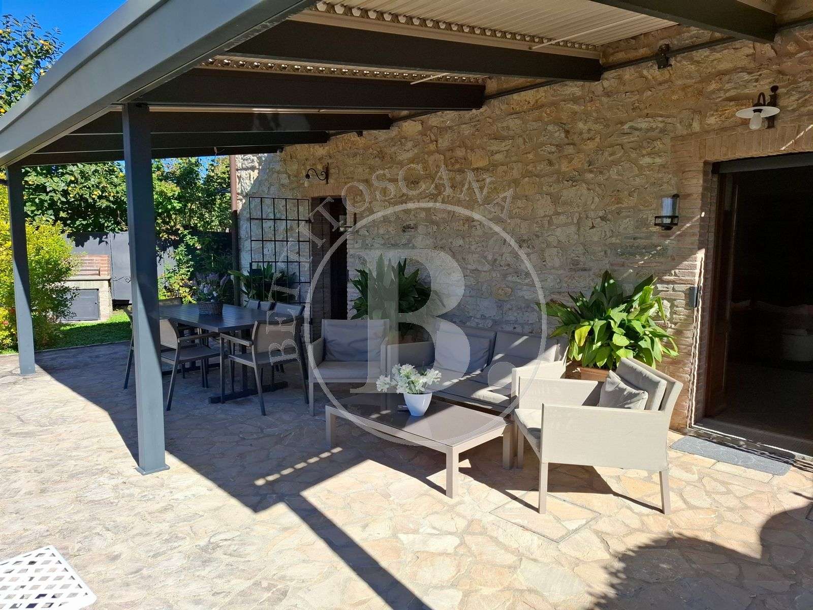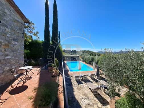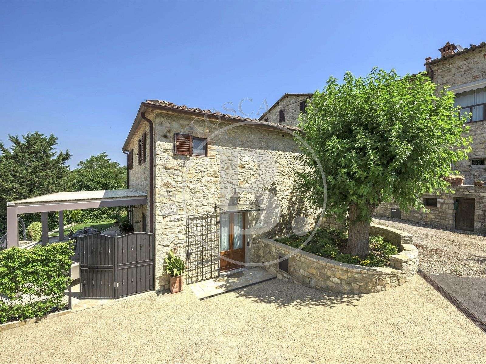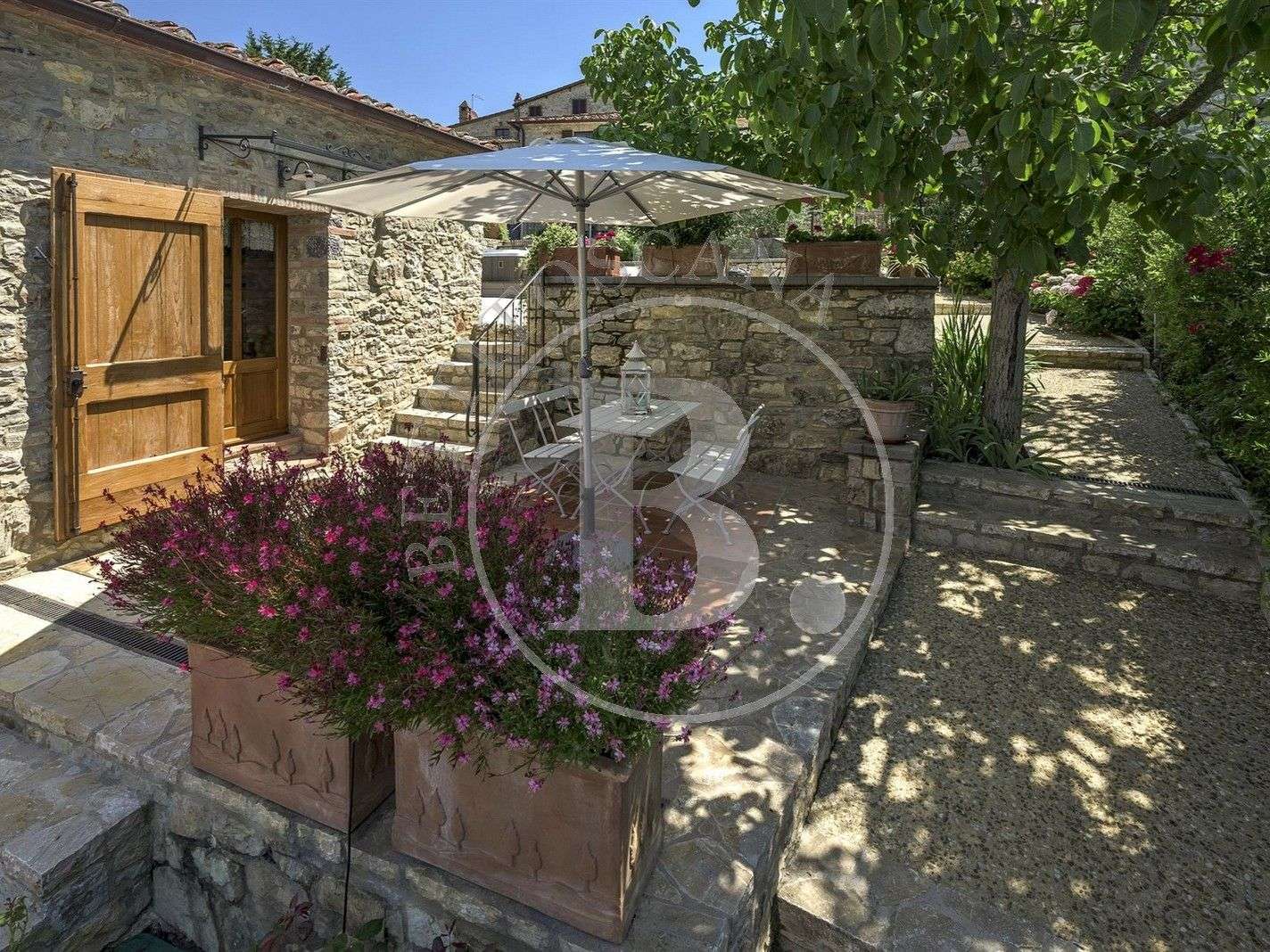 Situata in una tranquilla zona rurale nel cuore del Chianti classico, all’interno di un suggestivo borgo dal sapore autentico e dall’atmosfera rigenerante, vendesi un elegante casale in pietra con delizioso cottage indipendente, circondati da un ampio giardino terrazzato, ricco di angoli riservati e zone relax; una grande piscina panoramica (15x7 m), perfettamente integrata nel paesaggio, completa questo quadro idilliaco.
