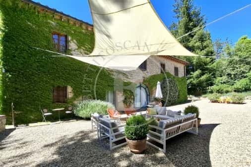 Nell’incantevole campagna del Chianti Classico, tra Firenze e Siena, proponiamo la vendita di una elegante proprietà posta a pochi minuti da uno dei principali borghi chiantigiani, composta dal casale principale e dal fienile, circondati da 24.000 mq di terreno privato dove è inserita una piscina di 14x7 mt.