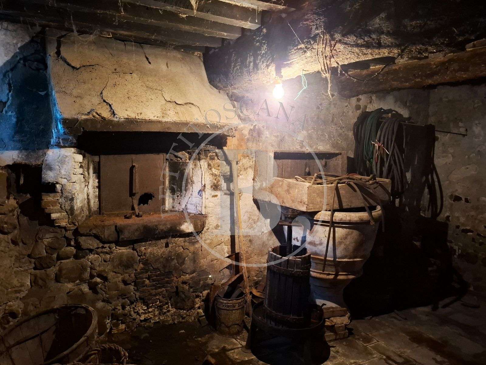 Una scala interna conduce al piano inferiore, per un totale di circa 280 mq, dove troviamo le storiche cantine, un tempo dedicate alla produzione di olio e vino, perfette oggi per essere trasformate in spazi di grande carattere.
