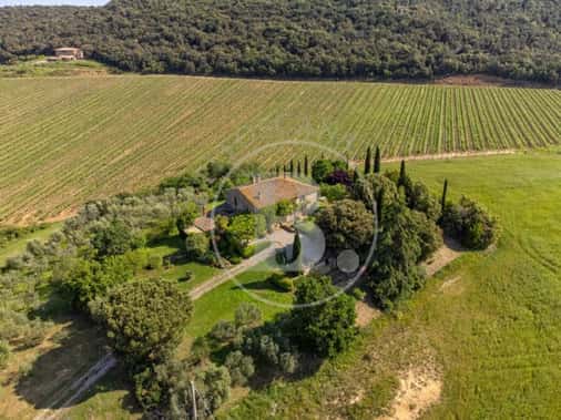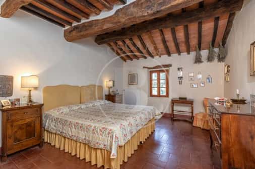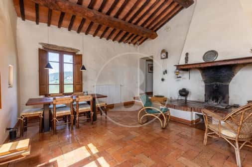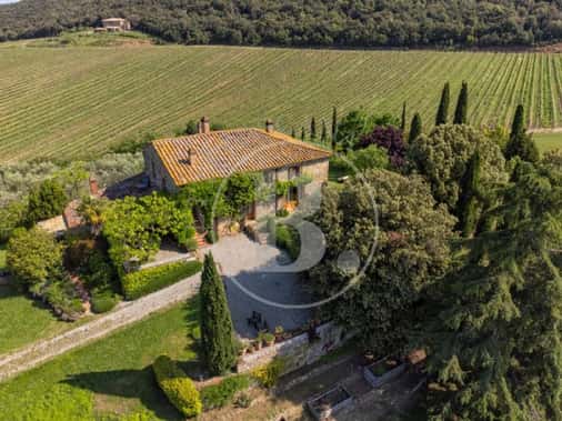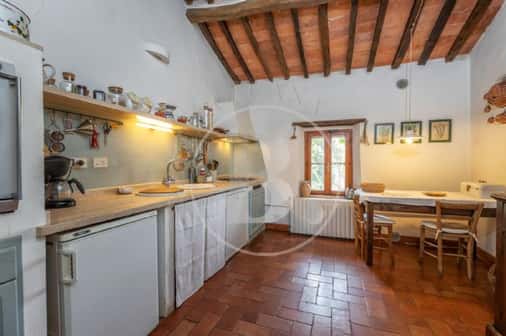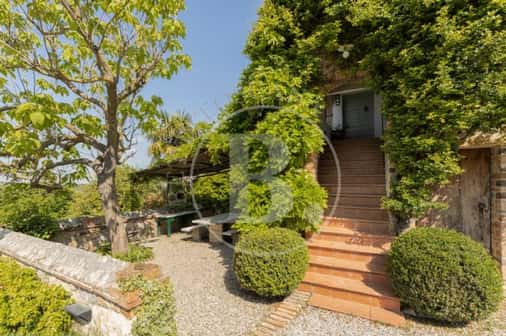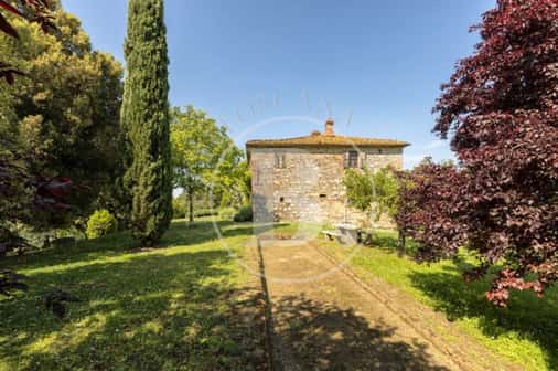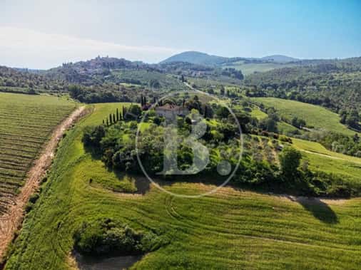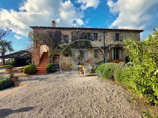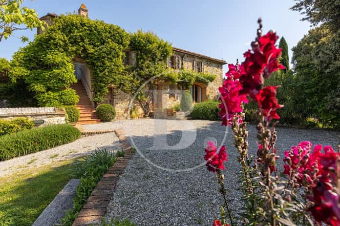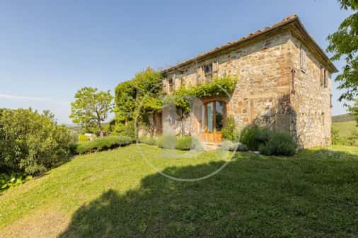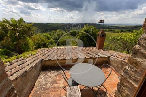 Una breve strada bianca conduce a questo caratteristico casale toscano realizzato in pietra nel 1700 e che conserva perfettamente la sua struttura originaria con gli archi, la loggia al piano primo e le rifiniture in terracotta.