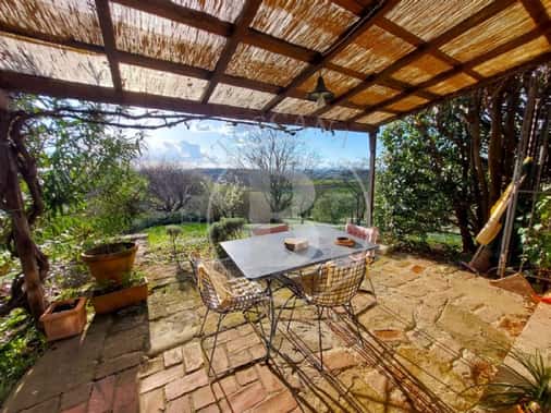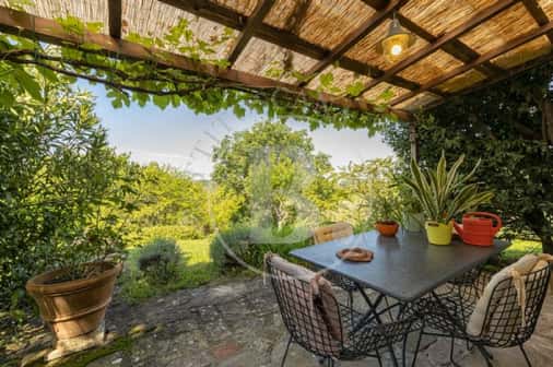 -La grande scala in cotto con loggia conduce all’appartamento principale del piano primo con una deliziosa terrazza panoramica, cucina, soggiorno, due camere matrimoniali e una sala da bagno.