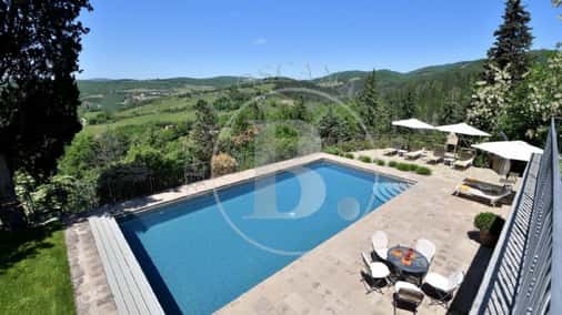 Molto particolare il giardino terrazzato su tre livelli dove a ogni livello corrisponde una zona specifica: quella conviviale destinata a gustarsi pranzi cene e colazioni all'aperto con una meravigliosa vista panoramica, il prato con la pool house, palestra bagno e spogliatoi per finire con la piscina e lo splendido solarium panoramico dove rilassarsi godendosi il tipico paesaggio del chianti tra olivi cipressi , vigne e borghi medioevali.