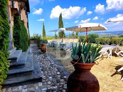 Meraviglioso il panorama e il contesto circostante la villa principale con una superficie di 670 mq, attualmente suddivisa in due appartamenti disposti attorno ad un caratteristico chiostro centrale: