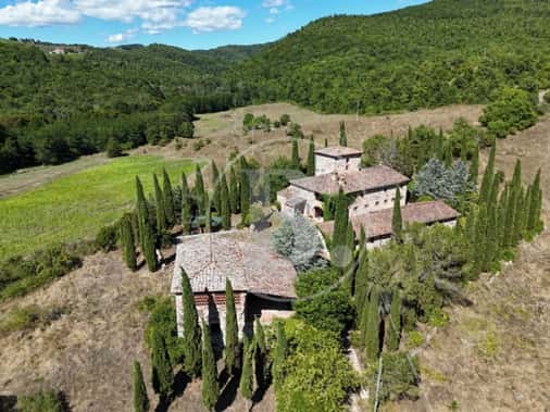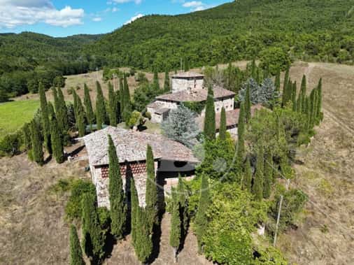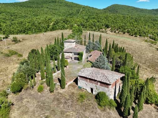 La proprietà si trova tra Gaiole in Chianti e Siena e si compone di tre fabbricati, quello principale è un casale ex. mulino, il fienile ristrutturato al grezzo, e le ex stalle/magazzini.