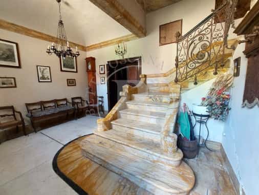 Da una corte su cui si affacciano i vari fabbricati, come fosse un piccolo borgo, si entra nella VILLA con una superficie di circa 500 mq: al piano terra vi è una grande cucina, un salone due soggiorni, una biblioteca, un bagno, una piccola cappella privata; delle scenografiche scale in marmo ci conducono a un piano intermedio composto da un soggiorno una camera e un bagno oltre alle scale di servizio per l’accesso alla zona sottotetto composta da tre locali e un bagno. Il piano primo è composto da quattro camere, un bagno e un grande salone con accesso a un balcone panoramico.