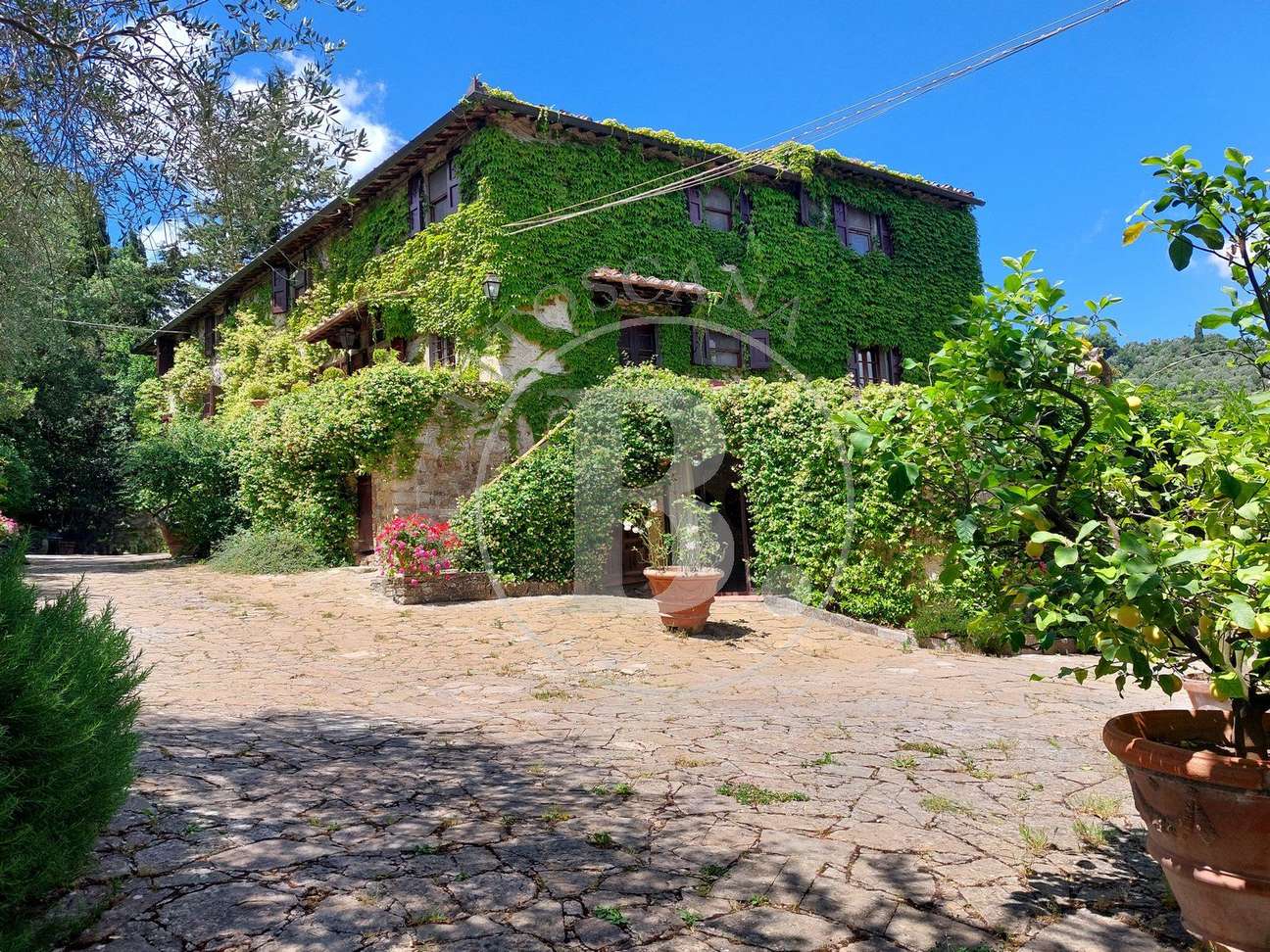 Nel Chianti Classico, antico casale in pietra con dependance, piscina e campo da tennis