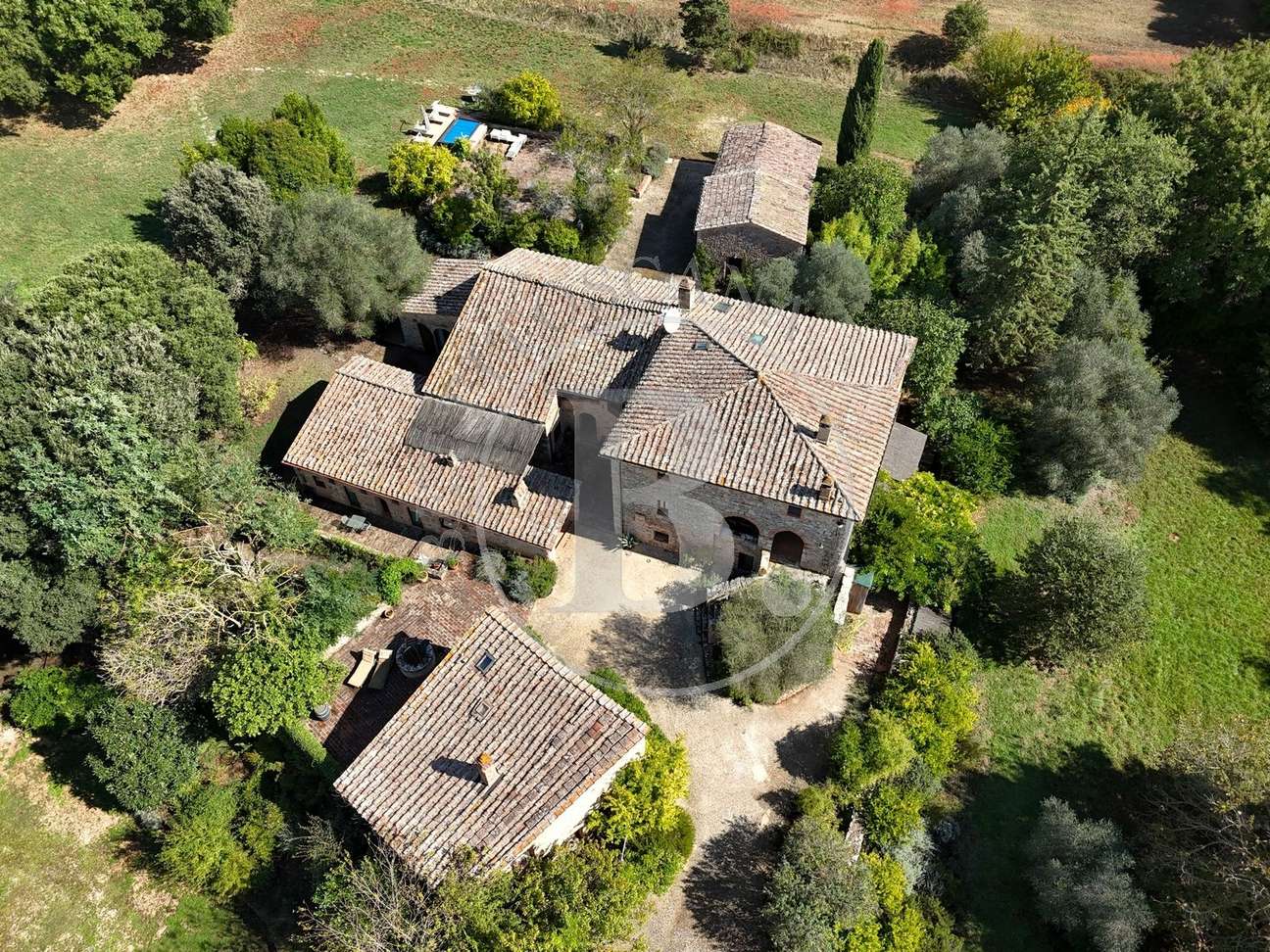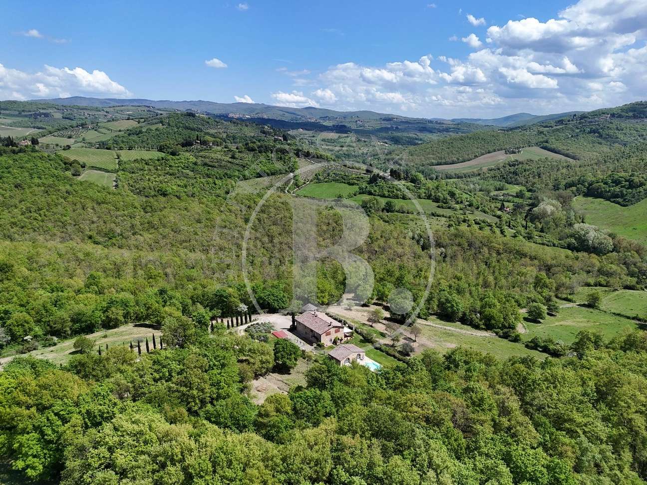 Nel Chianti classico, a pochi km da badia a Passignano elegante casale con dependance, piscina e 25 ettari circa di terreno.